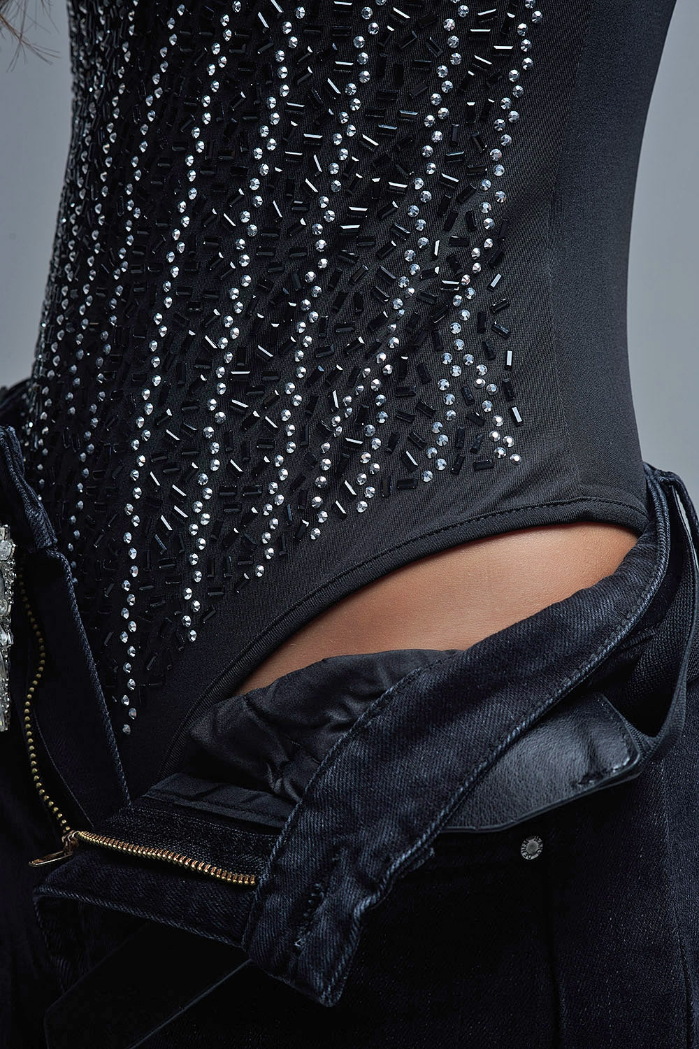 BODY de festa com brilhantes em preto sofisticado! Com alças ajustáveis para um ajuste personalizado.