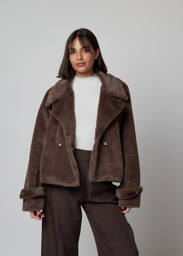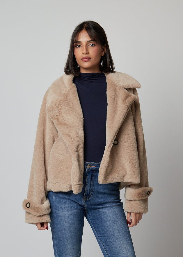 Casaco de pelo corte reto.